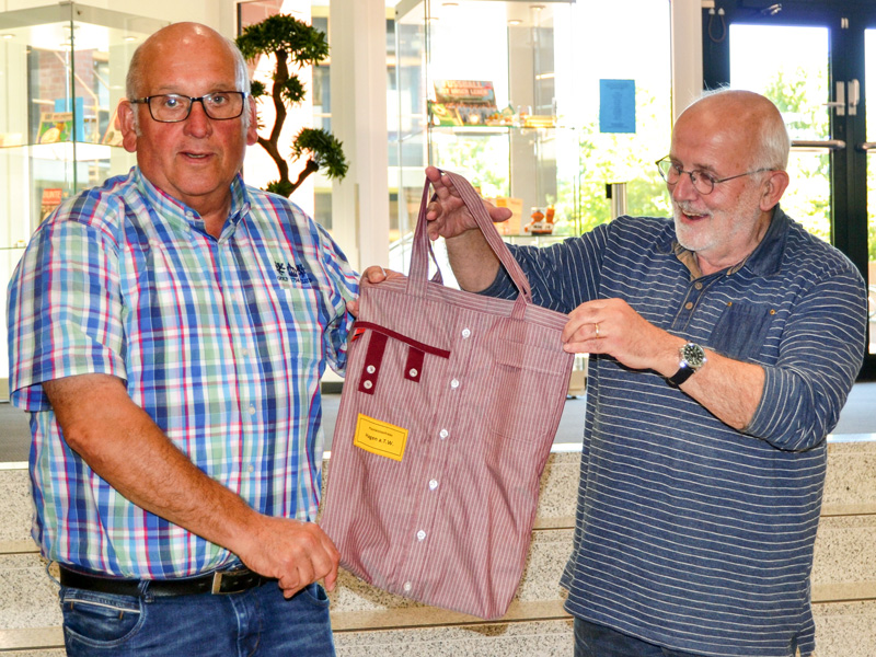 Beide stellten aus alten Hemden genähte Tragetaschen vor als neueste Kreativität ihrer erst zu Jahresbeginn gestarteten, aber dank auch des angenehmen Klimas bereits auf 15 Aktive gewachsenen Gruppe vor. „Man weiß nicht, mit was unsere Gäste ankommen“, so Wille, es sei jedes Mal ein Erlebnis. Da es in Hasbergen noch kein solches Projekt gebe, habe sich jüngst aus dieser Gemeinde ein Experte für Nähmaschinen angeschlossen.