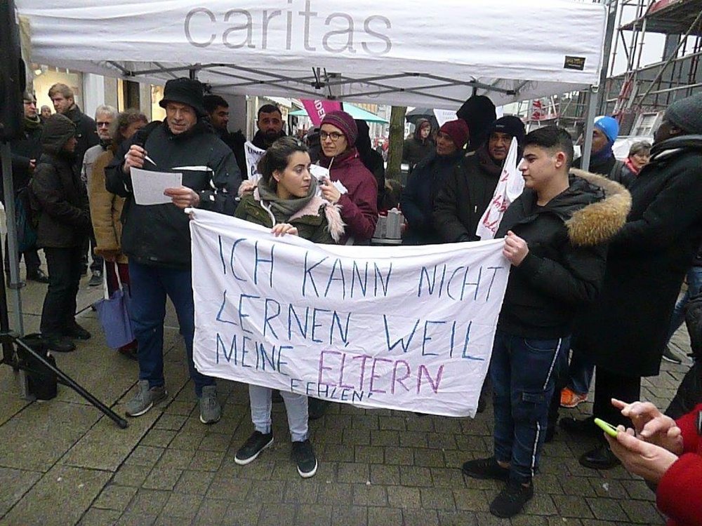 Mit der Teilnahme an der Menschenkette In Osnabrück haben wir die Forderung nach sicheren Häfen für Flüchtende unterstützt. Mit mehreren hundert Menschen zwischen Neumarkt und Theater wurde die Bundesregierung aufgefordert, der Bereitschaft der inzwischen mehr als 30 deutschen Städte zu entsprechen, Schutzsuchende aufzunehmen und die Politik des bewussten Sterbenlassens im Mittelmeer zu beenden. Gefordert wurde zudem, den Nachzug von Familienangehörigen zu erleichtern (s. Foto).