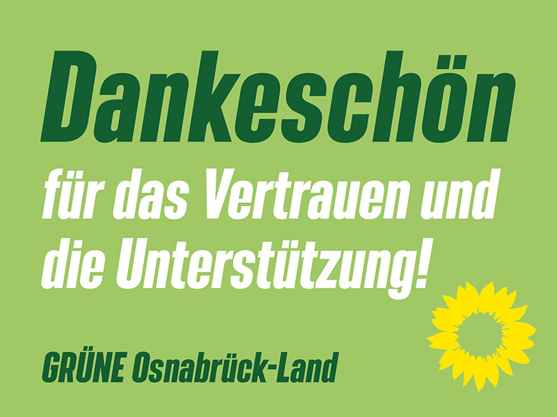 Wir Grüne konnten das beste Ergebnis aller Zeiten erzielen. Für dieses Vertrauen möchten wir uns bei unseren Wählerinnen und Wählern und ganz besonders auch bei den vielen engagierten Wahlkämpfer*innen ganz herzlich bedanken. Wir freuen, uns, dass unsere Kandidatin aus dem Wahlkreis Osnabrück-Land, Filiz Polat wieder Teil des Bundestages sein wird und gratulieren ihr dazu ganz herzlich. Auch Thomas Klein im Wahlkreis Osnabrück-Stadt beglückwünschen wir mit über 20% der Erststimmen zu einem großartigen Ergebnis - auch wenn es leider nicht für einen Einzug in den Bundestag gereicht hat. Dennoch stellen wir aus Niedersachsen in der neuen GRÜNEN Fraktion künftig 13 Abgeordnete - mehr als doppelt so viele wie vorher. Das ist ein starkes Signal aus Niedersachen, das sogar über dem Bundesergebnis liegt.